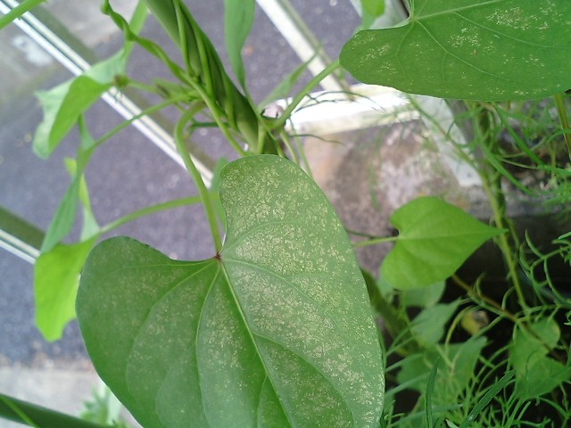 素人のワタシが見るとハダニの状態にとても良く似ている感じだけど、葉裏を見るとハダニの姿は無いので何かの病気なのだろうか?