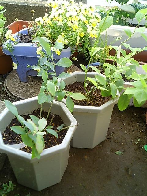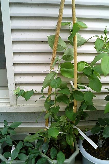 2本あるブルーベリーのうち、どうにもこうにも邪魔で邪魔で仕方のない子を支柱で起立!させたのはもう数日前