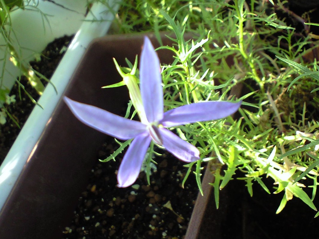 他のイソトマが咲いている時期にはぜんぜん花がつかずに、ひとつ花が咲いたからまぁいいかなんて言っていた株に今朝2つ花が咲いていたのを発見