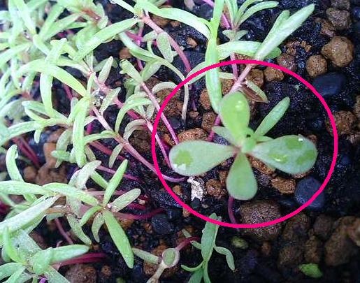 松葉牡丹の成長過程ではじめは丸い葉が細くなっていく、というのがあるんでしょうか?
