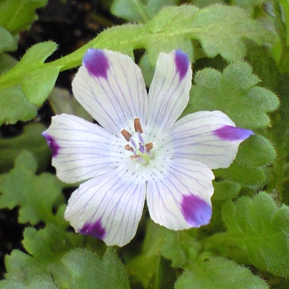 あとから種まきしたネモフィラ(ファイブスポット)の花も昨日開花していた