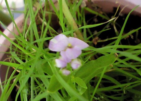 mixを播いた3つの鉢のうち2つの鉢で咲いているので雑草じゃないぽい
