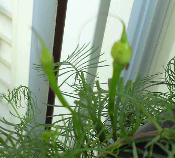 地植えの方はまだつるを伸ばすのに一生懸命な様子だけれど鉢植えの方には小さな小さなつぼみがいくつかついてきましたよ