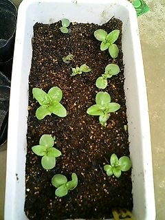 このままコンテナで育てるつもりですが、かたまって発芽していた子たちを移動してこんなにしました