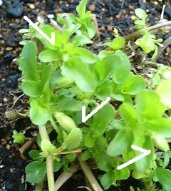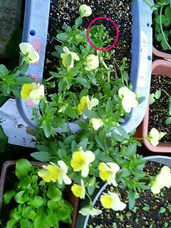 「もう切っちゃだめ!」と子供に泣きつかれ中途半端な切り戻しの結果とてもへんてこりんなパンジーの姿になってしまいました