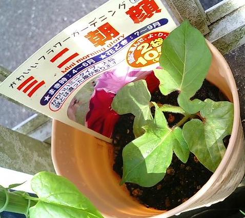 ヘブンリくんと比べると、小学生の頃に育てた朝顔って感じのなつかしい気持ちがするミニ朝顔の苗