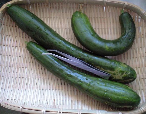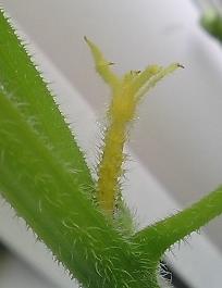 今朝、いくつかついていた雌花のつぼみを見てみるとこんな常態 まずは一番状態が悪く終わってる子 黄色くもう先が見えてしまったような子 株の先端近く、これが通常の状態であろう子 株の下の方からだんだんに状態が悪くなってきています 下からというのは生育の進行具合によるものと思われ、要するに生育不良? 大元の原因は株の弱さにあると思います 一番は環境が良くない事だとは感じているのですが接木の苗だったらもっと元気に育ったのかも知れません うどんこ病にしてもしかり、葉色が薄いのにしてもしかり とりあえず液肥を与えてみますが、きゅうりはここには向かないのかも知れないですね