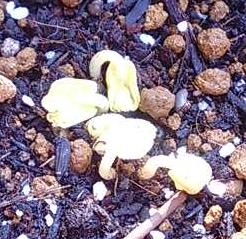 オクラの発芽が悪かったので時間差で新しい種を水につけて発芽率あげてから種まきしたオクラ