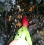 一番大きい株の根元を掘り掘りしてみたら少し根が太っていました