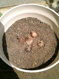 土を7ぶんめくらいまで入れて球根を並べたとこ