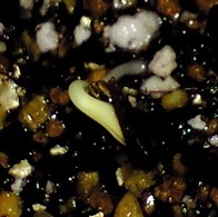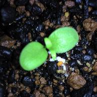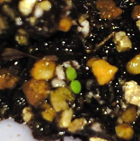 一方ストロベリーキャンドルと一緒に種まきした勿忘草はやっと一つ発芽してきたところ