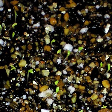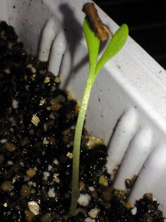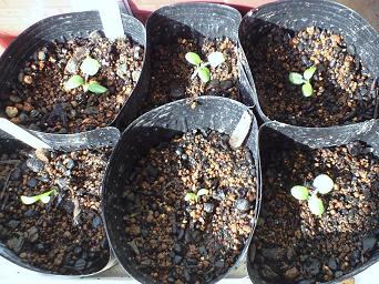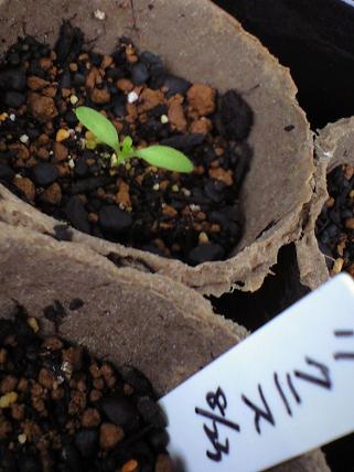 (ディモルフォセカ種まきから5日目で2本ポットあげ)