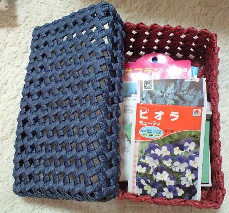 紙バンドの手芸(いわゆるエコクラフトと呼ばれるもの)で種入れの箱を作っていたのが昨日完成しました