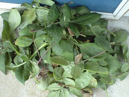 水曜日にナス、スティックセニョール、しそ、低木ミニトマト(わき芽の挿し芽からのもの)に液肥を与える