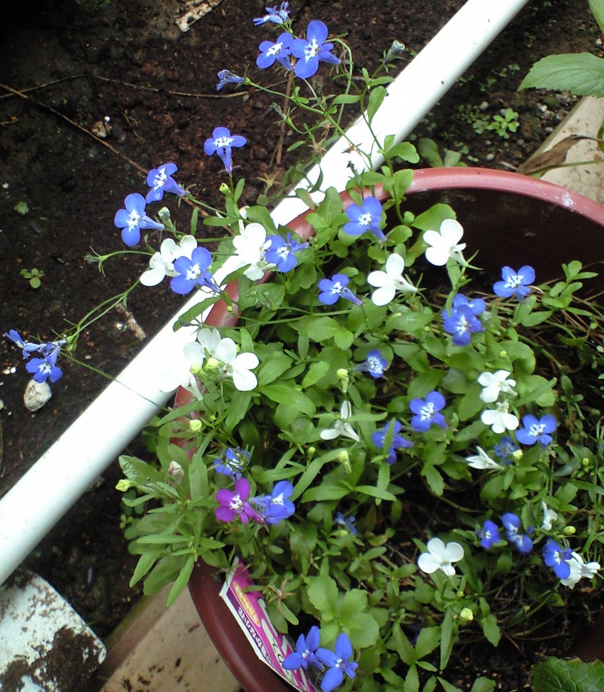 HCで売られているロベリアの開花鉢に比べると貧相な鉢だけれど、きれいな形のきれいな花が咲いているので貧相な鉢でもワタシは好き