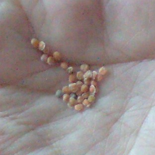 今日はこの色(くすんだ赤、写真よりもっと渋い色)と黄色に赤ドットが咲いていた