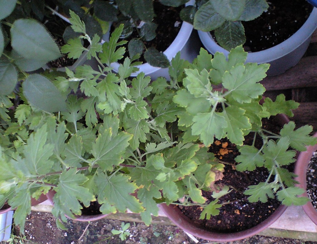 ここ数日の天気の悪さと、植え替えた後で弱っていたのが原因か庭側のダリアがほとんどすべての鉢にうどんこ病が発生していた