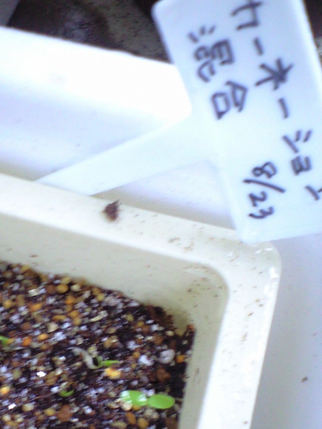 種が非常に小さい(ほとんど粉状態)ので芽も小さく発芽に気付かなかった