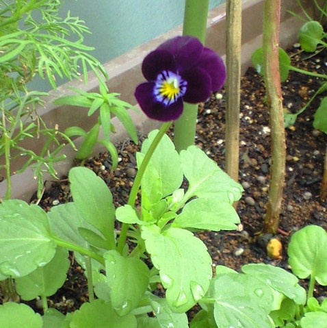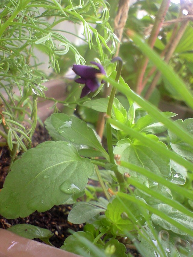 種まきしたパンジーのうち、何本も発芽している100均パンジーとイオナパープルを徒長しないように外の日陰に出しました