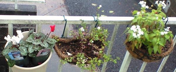 こちらは、まだ植えかえてないガーデンシクラメン(雨で赤の花が少し散ってしまってさみしい状態)