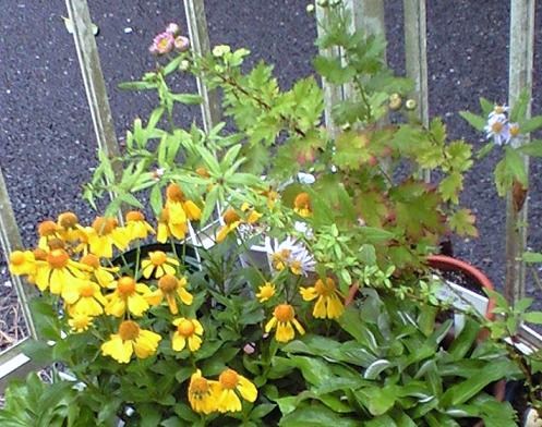 前方にメネシア、キューティ、一本だけ「こりゃダメかもぉ」とポットあげをしなかった白妙菊を一応植えておきました